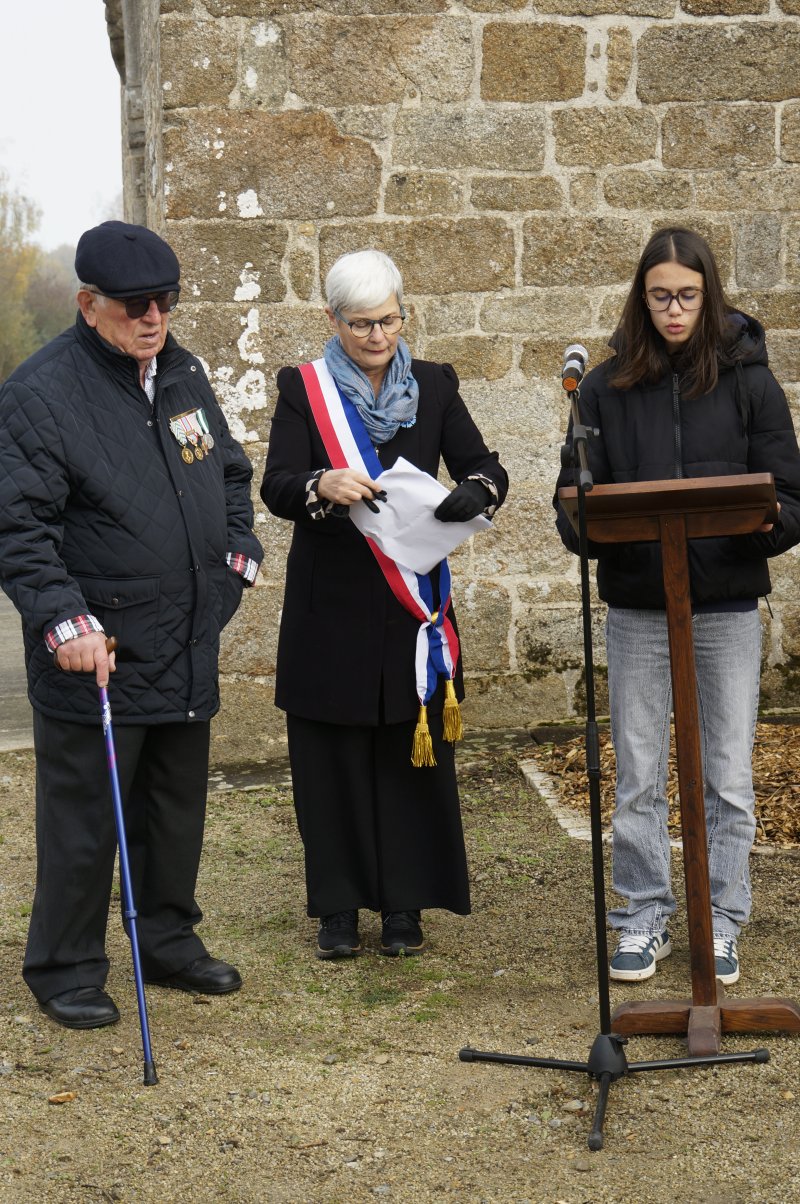 Après la lecture du message de Madame Catherine VAUTRIN, ministre des Armées et des Anciens combattants, et de Madame Alice RUFO, ministre déléguée auprès de la ministre des Armées et des Anciens combattants, Camille Roulland, jeune Cardreucienne, a lu le message de l’UFAC (Union fédérale des anciens combattants).