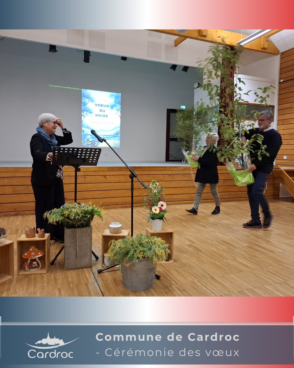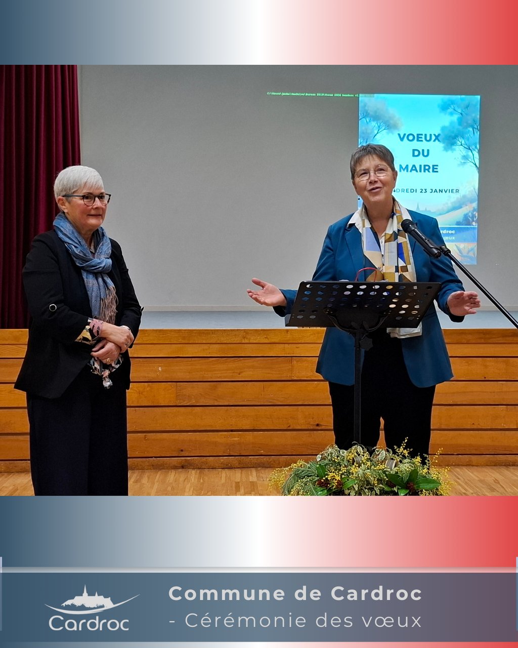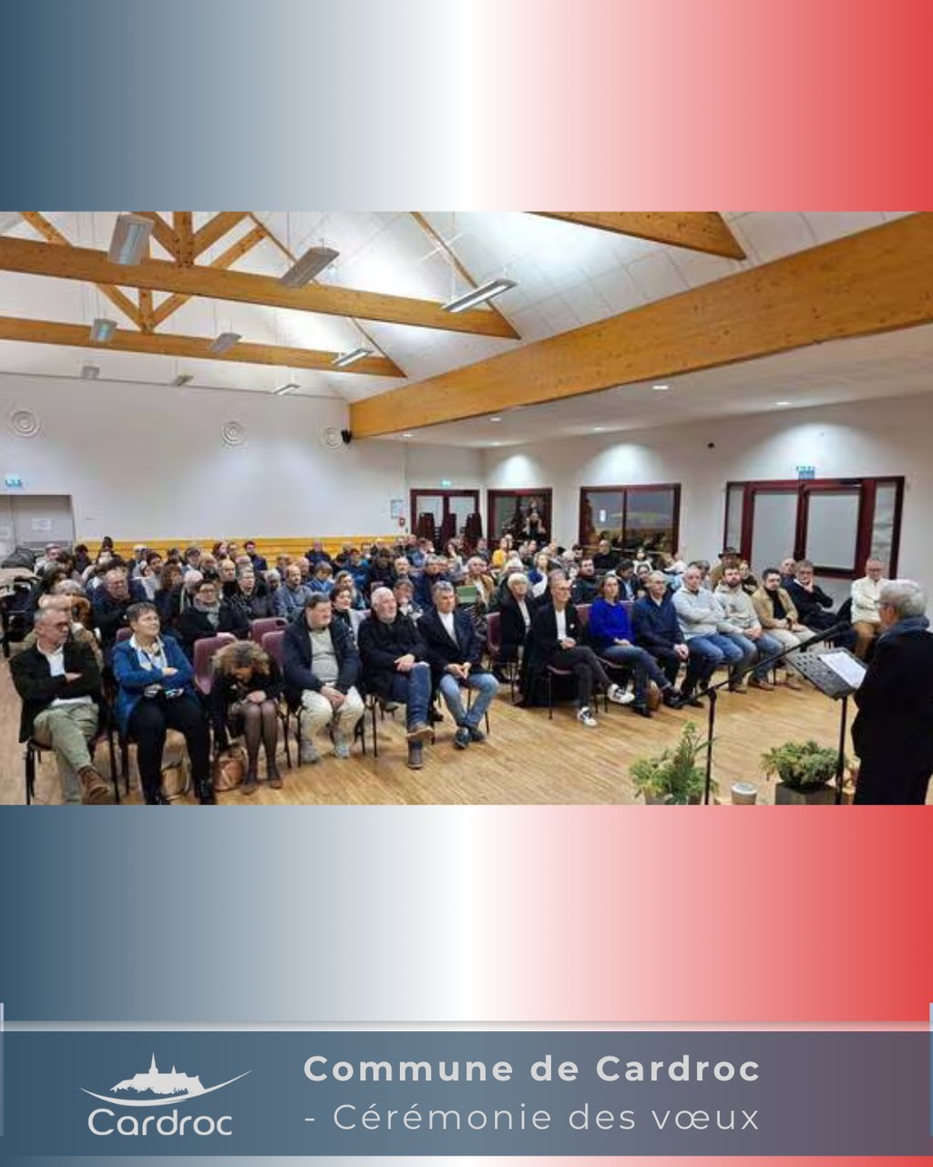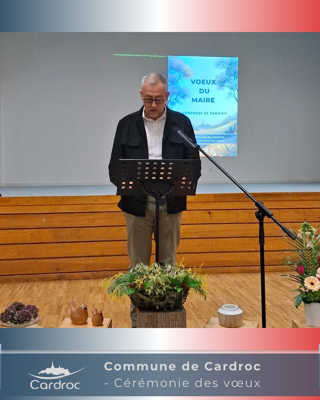 Les vœux se sont conclus par des remerciements adressés aux jeunes engagés dans l’opération « argent de poche », aux entrepreneurs, aux associations, aux anciens maires de Cardroc, Monsieur Thyard et Monsieur Mignot, aux conjoints des élus, ainsi qu’aux officiels présents : Mme Claudia Rouaux, députée d’Ille‑et‑Vilaine, Mme Béatrice Duguépéroux-Honoré, conseillère départementale, et Messieurs Sébastien Delabroise et David Buisset, vice‑présidents de la communauté de communes.