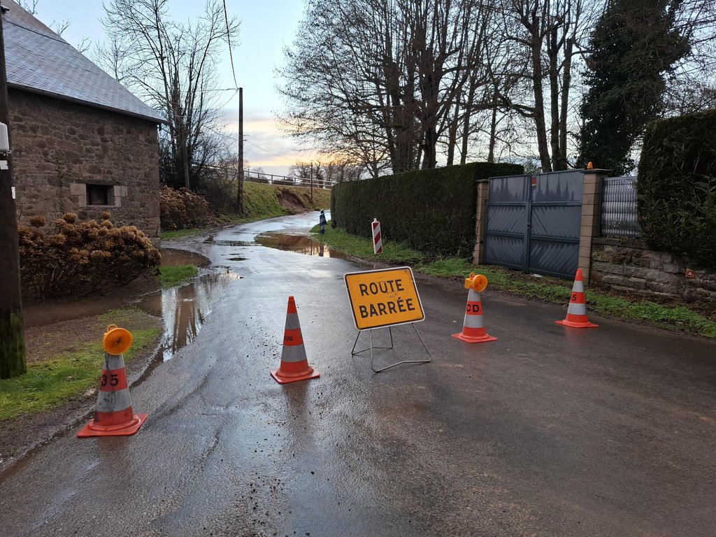 En raison des intempéries, la route départementale D79 est coupée au niveau du lieu-dit La Grille.