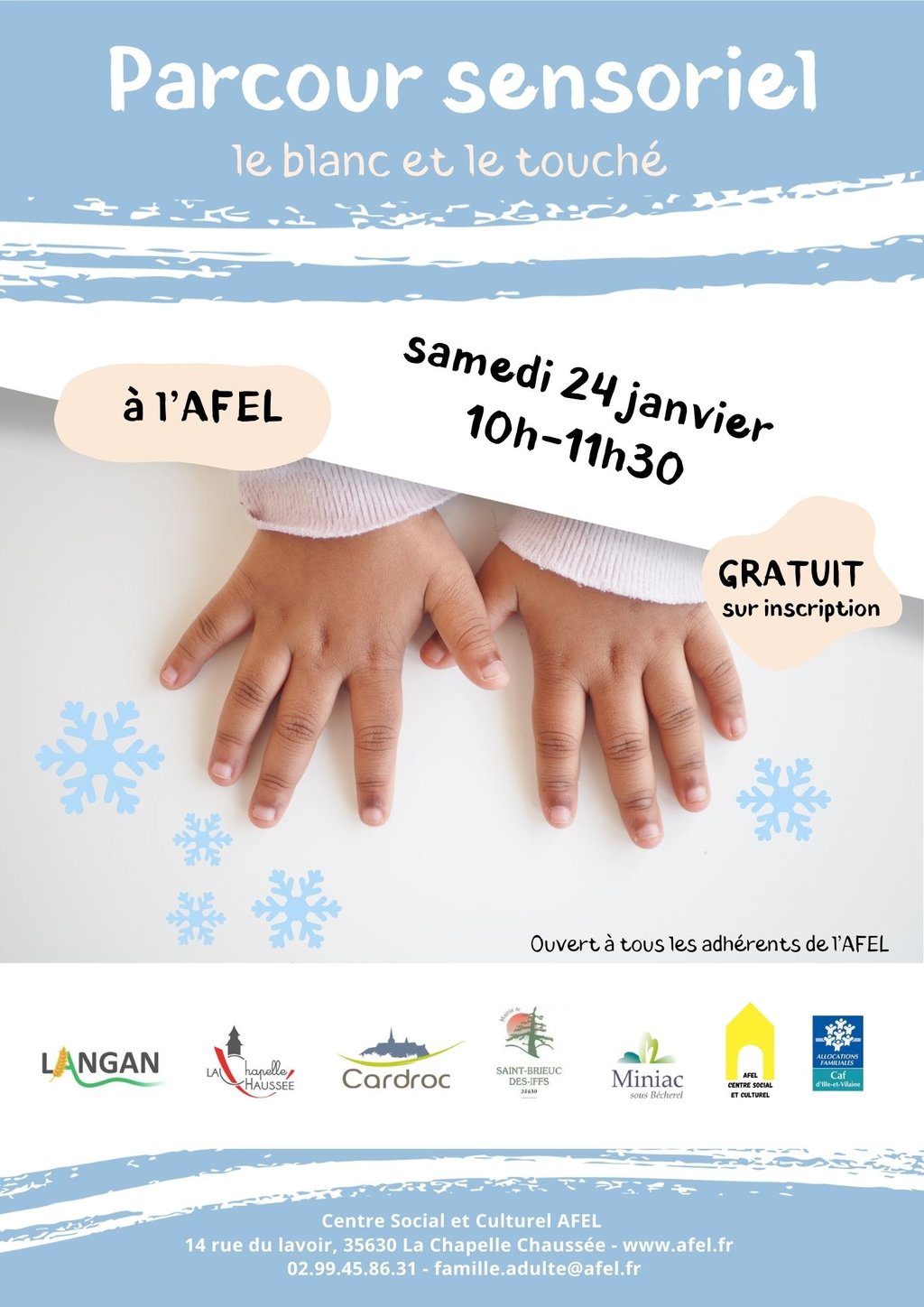 - Samedi 24 janvier : Parcours sensoriel le blanc et le toucher à l'AFEL - Gratuit sur inscription - 10H/11H30