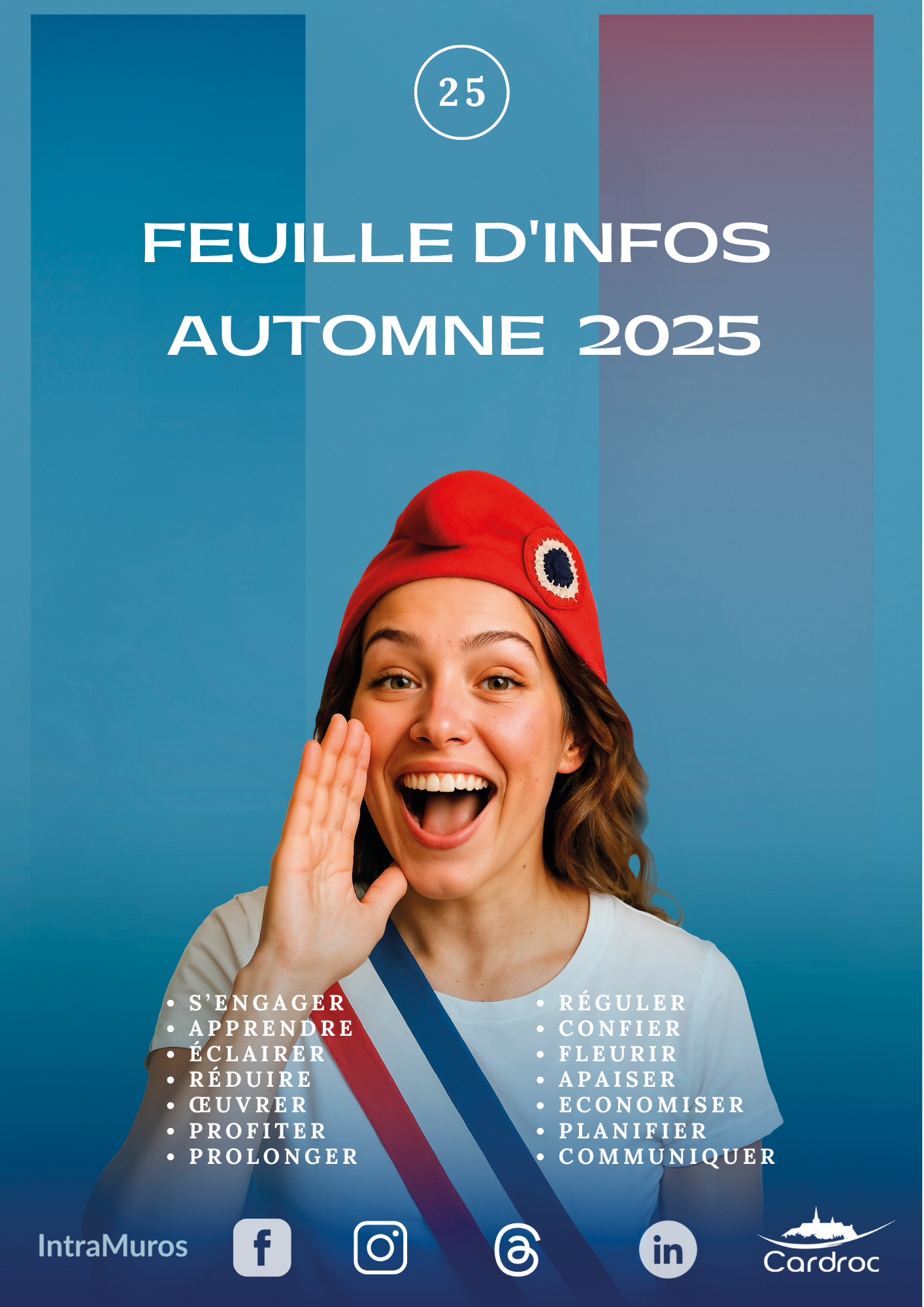 🗓️ La feuille d’infos paraît quatre fois par an (janvier, avril, juillet, octobre). Les articles sont à transmettre au plus tard 15 jours avant la fin du mois précédent.
